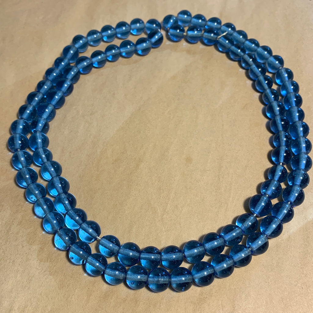 35" strand of antique Peking sapphire blue glass beads. Size is 10mm diameter with 2mm hole, from the late 1800's. Beads are in good new condition, 92 beads on the strand. Beautiful color, quite rare and collectible!