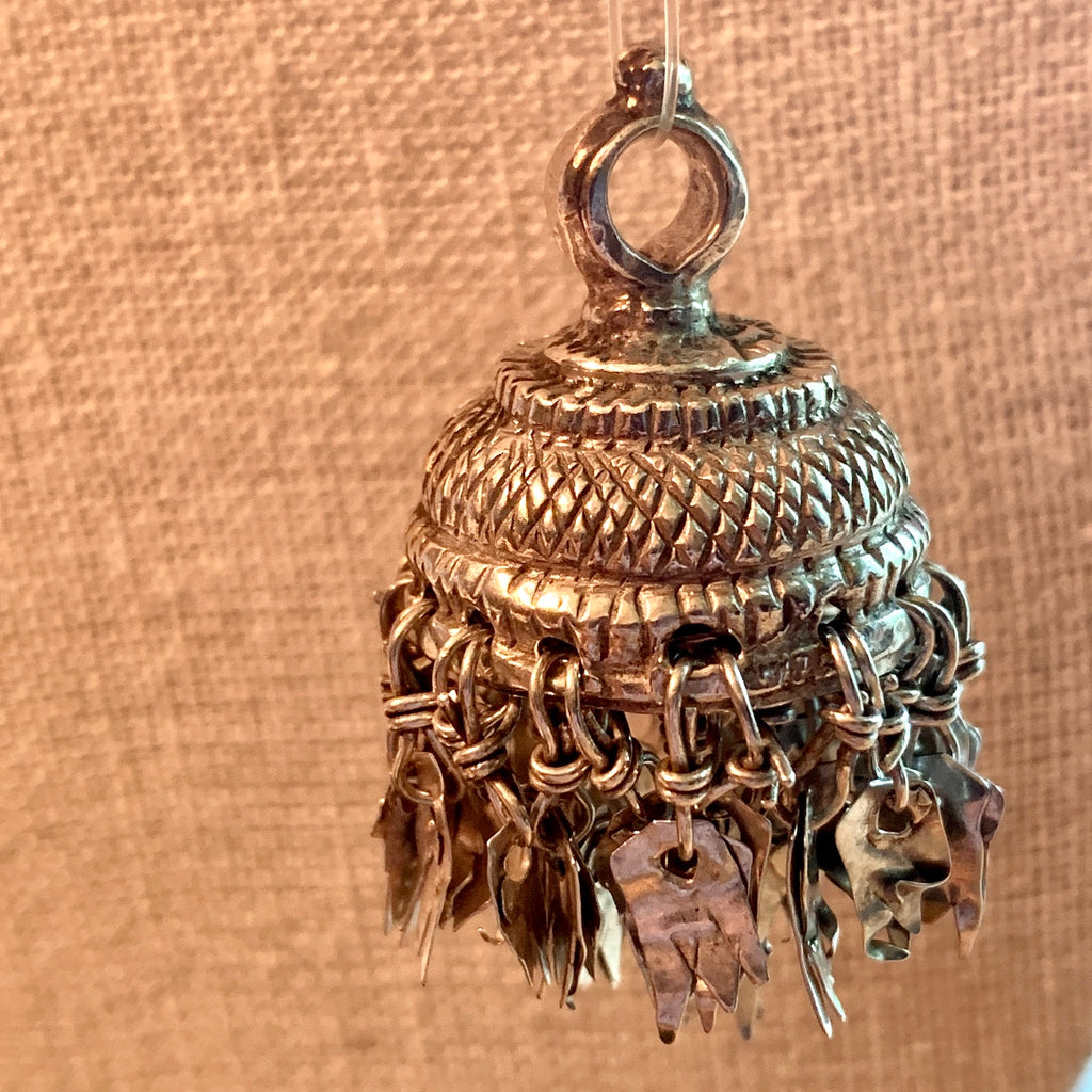 Lovely, large antique silver tassel, hand-made in Afghanistan in the 1920s. 1 1/2" long x 26mm diameter. This tassel has been tumble-polished and is about 90% silver. There are so many charms dangling and there is an inner structure which could be made into whatever tassel attachments you'd imagine! A beautiful pendant!