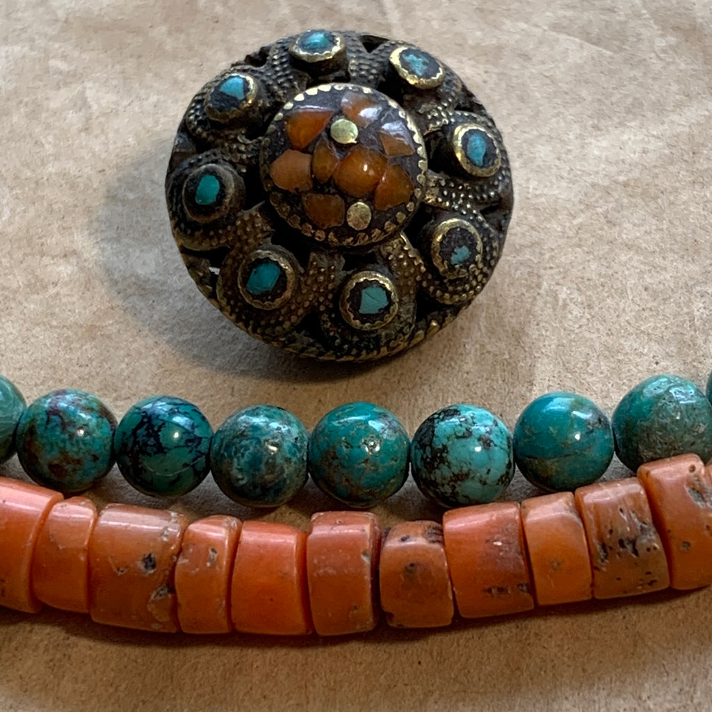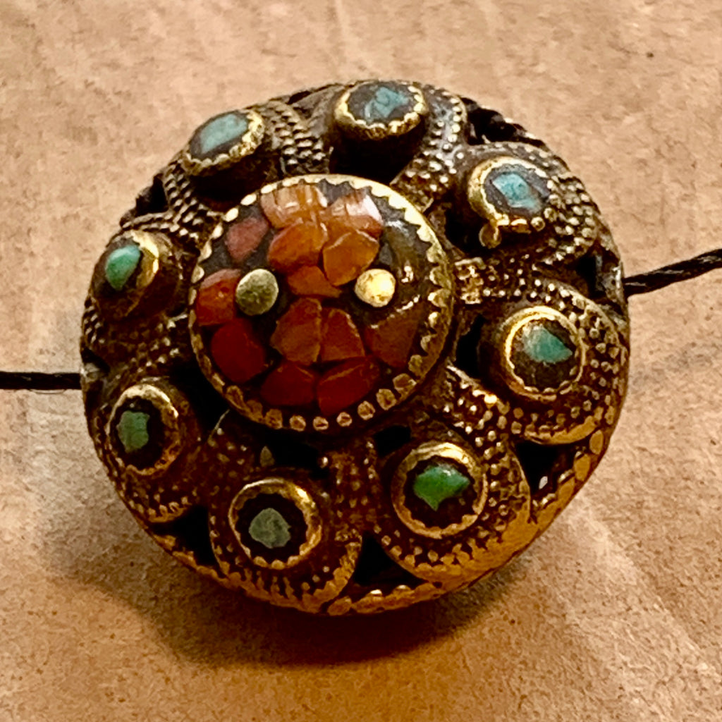 Nepalese Brass Bead with Coral and Turquoise