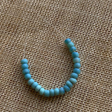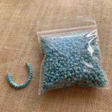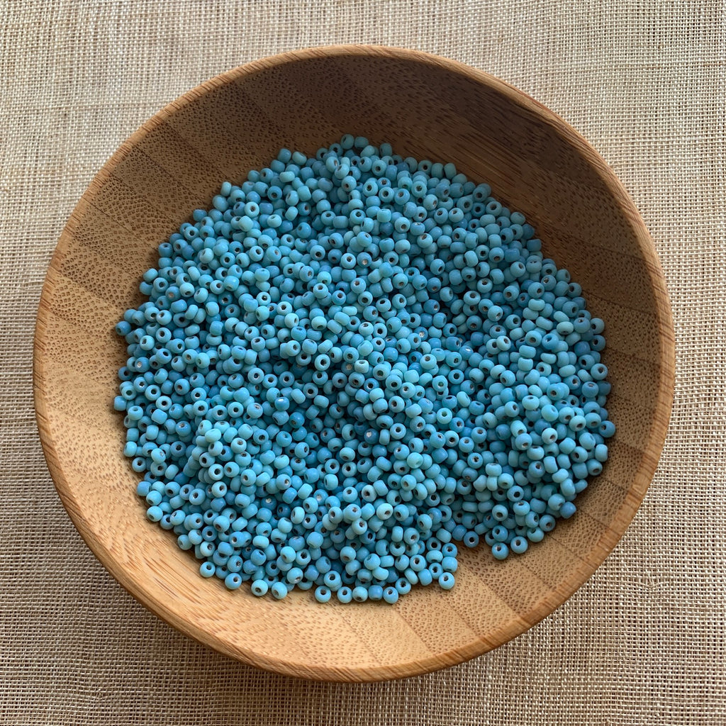 20 grams of vintage Venetian seed beads. 10° semi-transparent turquoise. Beautiful rich color designs well with old brass or silver. Old stock from early 1900's found in a warehouse! Matte finish, color varies slightly.