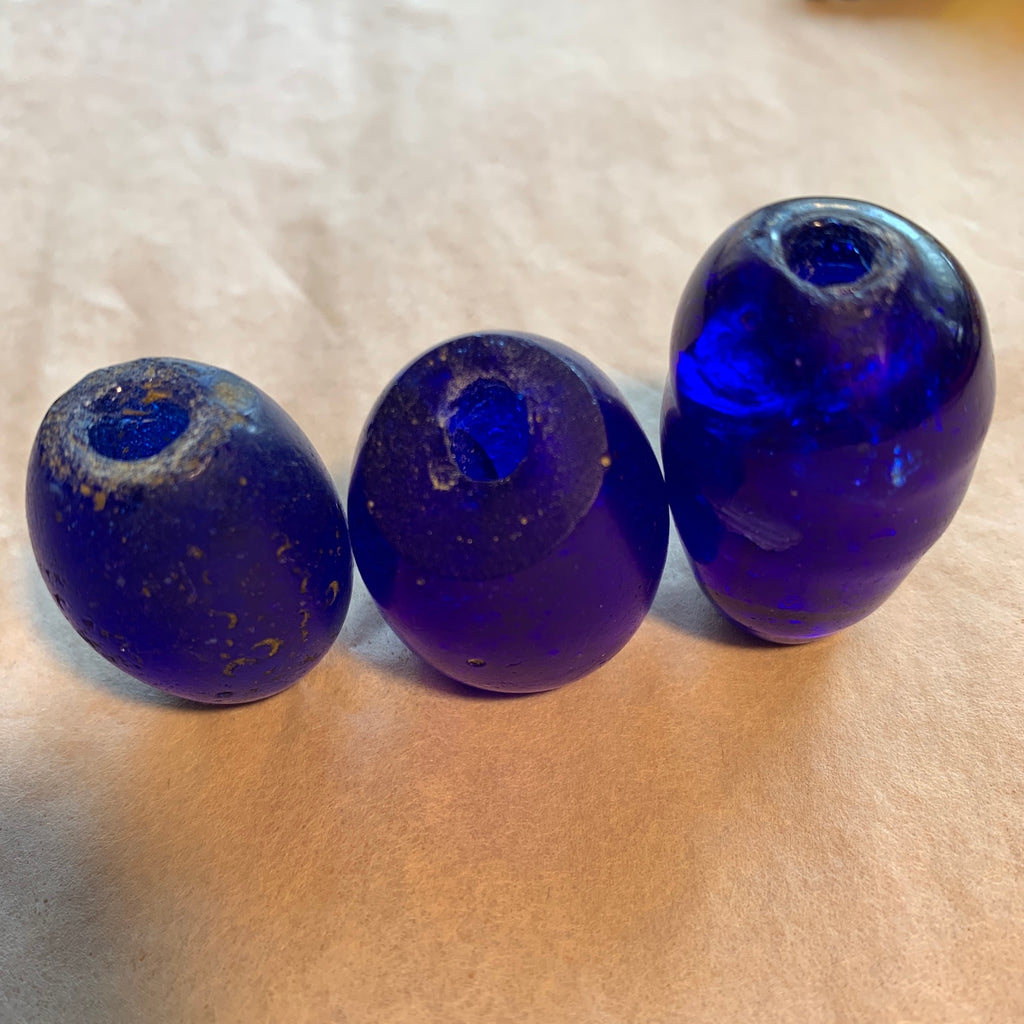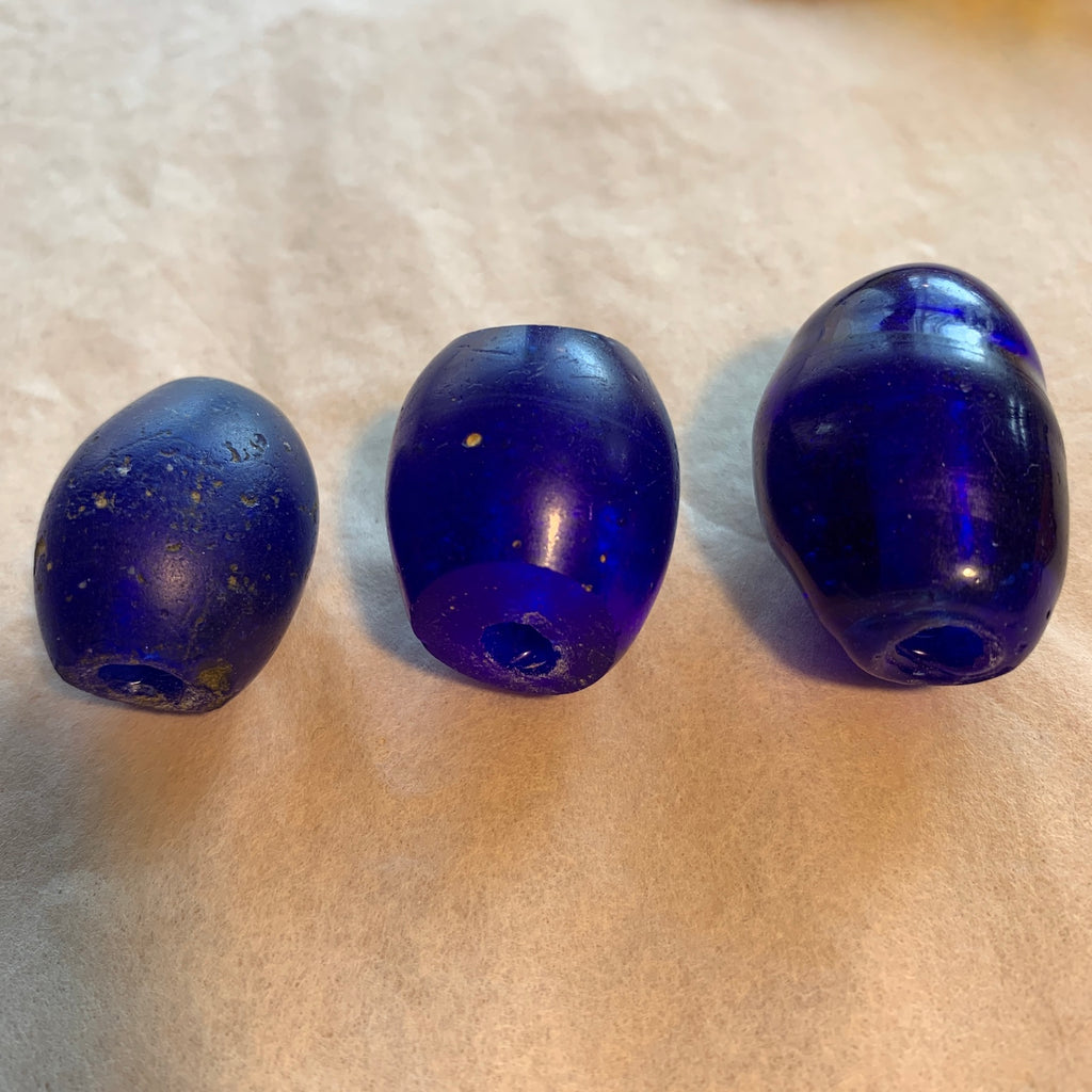 Large rare cobalt blue Dogon Beads, a Dutch-made bead circa 1700's, traded in West Africa. There is some pitting and chips on the beads, but that only adds to their rustic, chunky appeal. They have been well-worn! Size is approximately 26mm x 20mm diameter with 5mm hole. Sold individually, price is for one bead. Check out other cobalt Dogon beads on the website.
