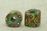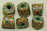 Here is a wonderful set of seven of cool psychedelic looking millefiori beads; 9-12mm long x 11-12mm in diameter. Venetian-made from the late 1800s. Beads show some wear minor chipping due to age and handling over the past 120+ years.