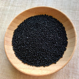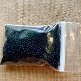 Vintage 13º Charlotte-cut antique jet-black glass seed beads, Czech-made 1980's. Loose, not in a hank, packed in a 11/2" x 2" ziplock bag. Shiny jet black. Beautiful!! Charlottes have one single facet or flat spot on each rocaille, a subtle sparkle effect. Traditionally used in Native American on & off-loom weaving, particularly peyote stitch.