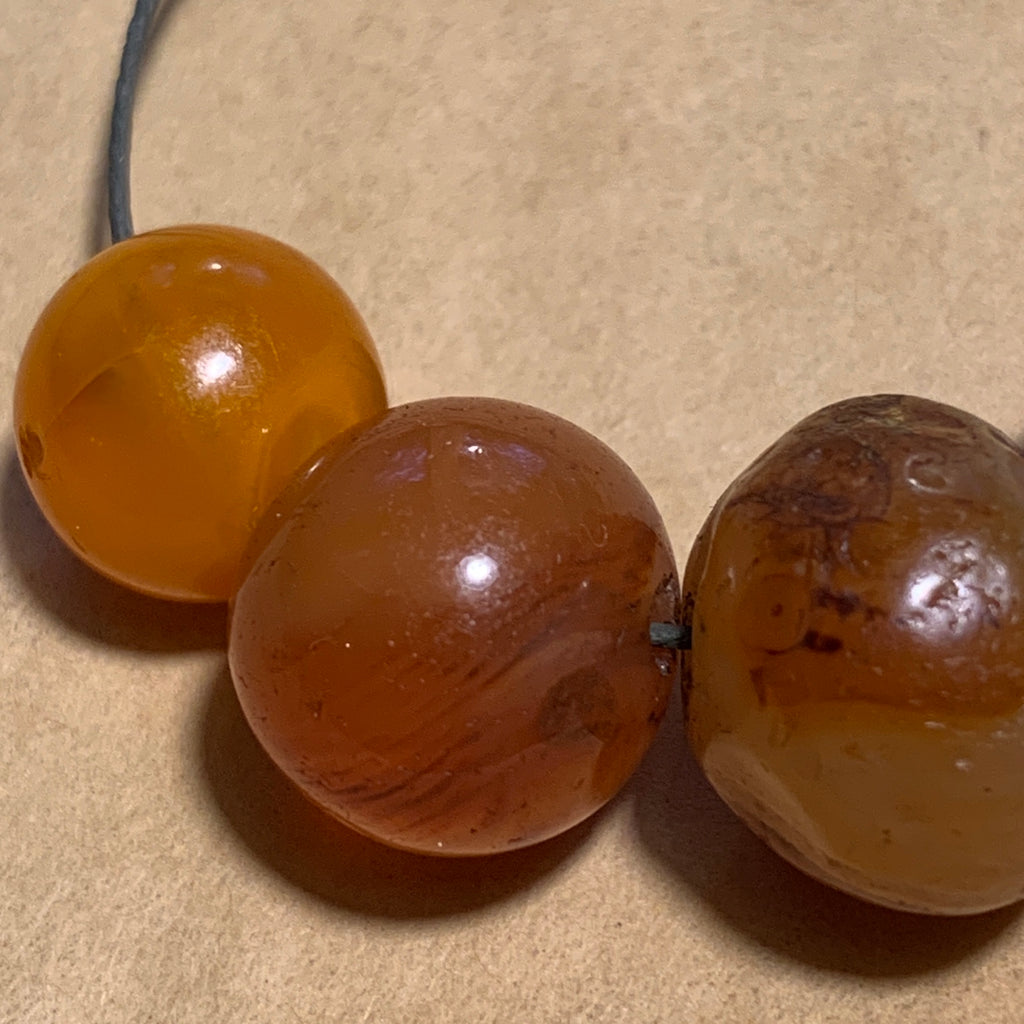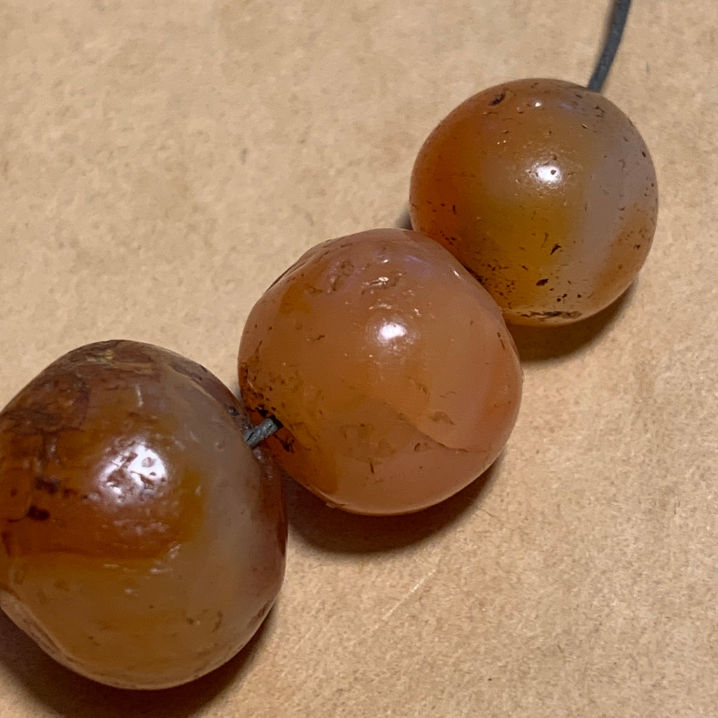 Beautiful and rare old carnelian beads from the ancient central Asian country of Bactria, northern Afghanistan. These are quite old, best guess 1000-1200 years old, highly collectible with goldfish orange colors. Center bead is 16mm diameter. 5 glorious carnelian beads on this short strand. Design something beautiful with these ancient healing gemstones!
