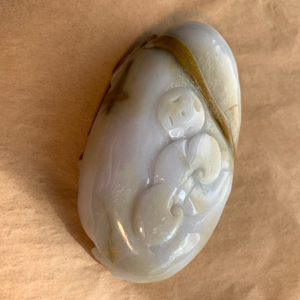 Extra-Large Lavender & Beige Jade Carved Pendant