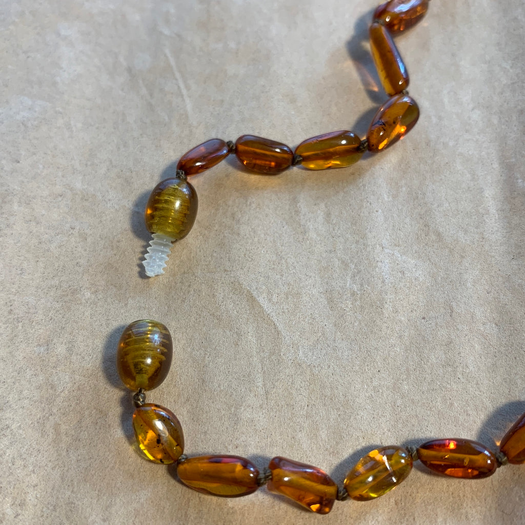 Vintage Amber Necklace, Smooth Elongated Organic Shapes